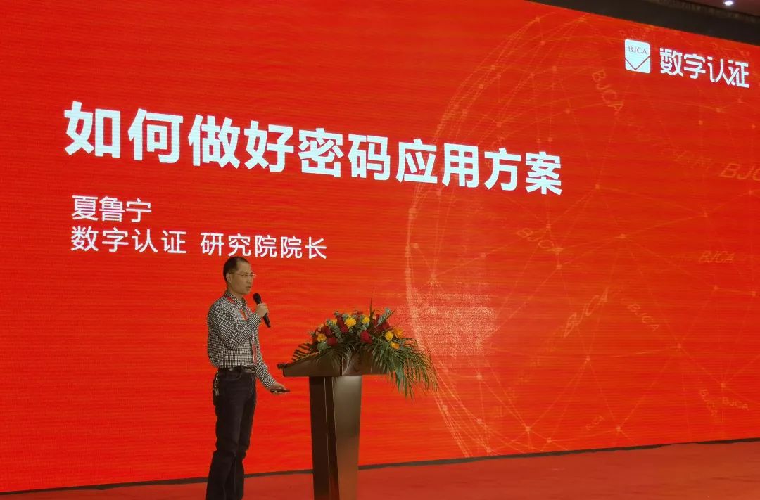 北京数字认证股份有限公司研究院院长夏鲁宁博士受邀出席了本次论坛,并就密评合规性背景下“如何做好密码应用方案”的思路与方法论进行了分享。