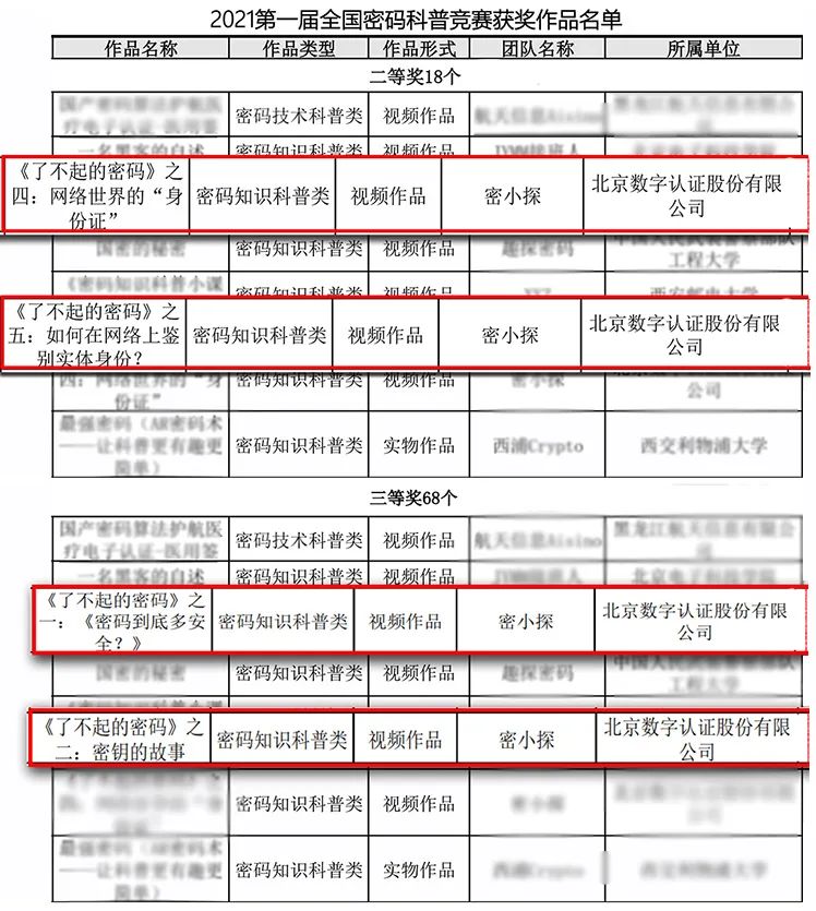 第一届全国密码科普竞赛名单揭晓!数字认证斩获二、三等奖