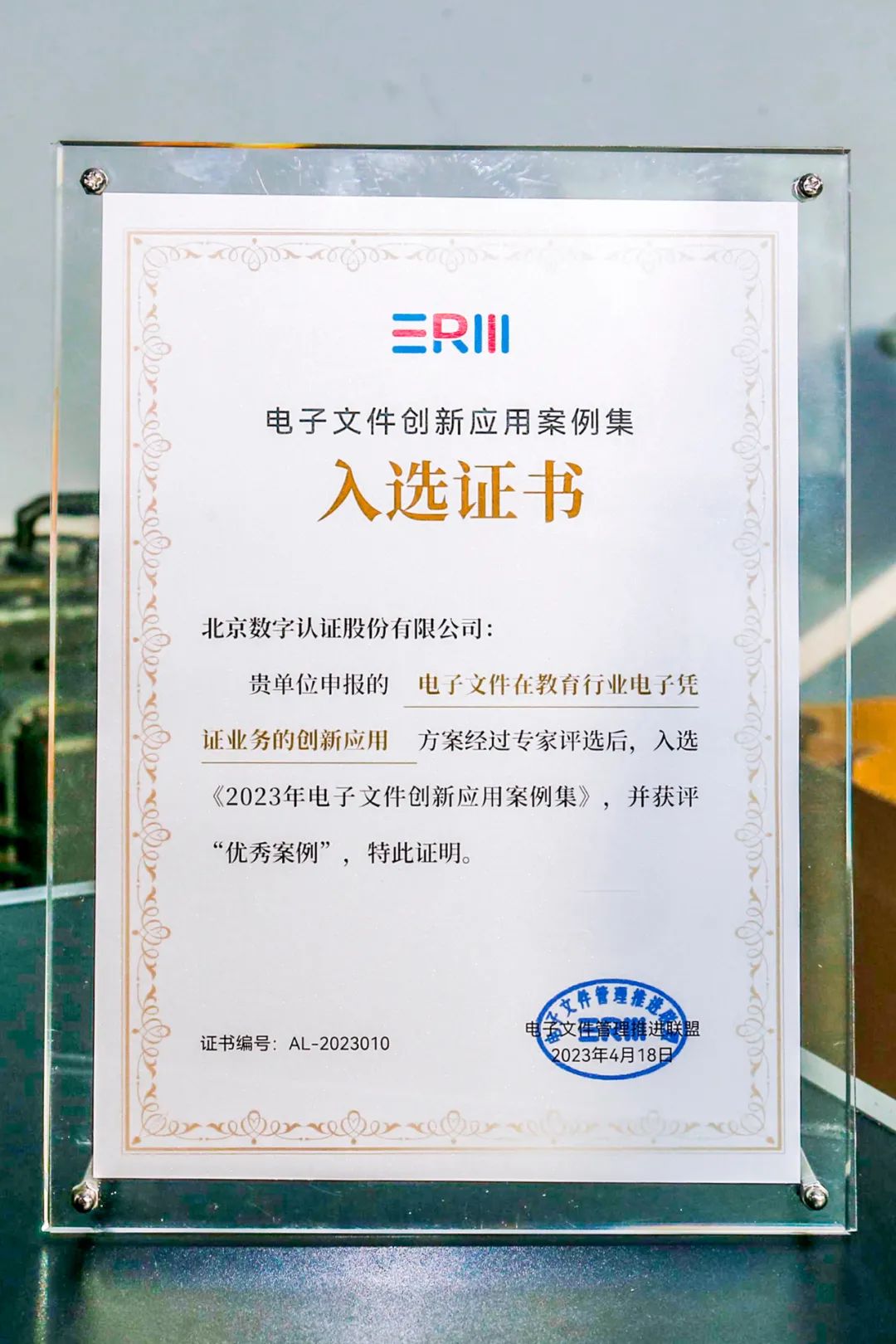 数字认证方案入选证书