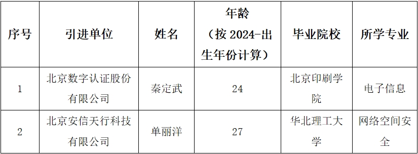 北京数字认证股份有限公司 引进2024年非北京生源毕业生的公示