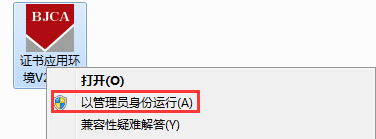 您在安装证书助手时不要使用鼠标直接双击安装程序,而是将鼠标移动至证书应用环境处点击鼠标右键——"以管理员身份运行"进行安装,如下图所示: